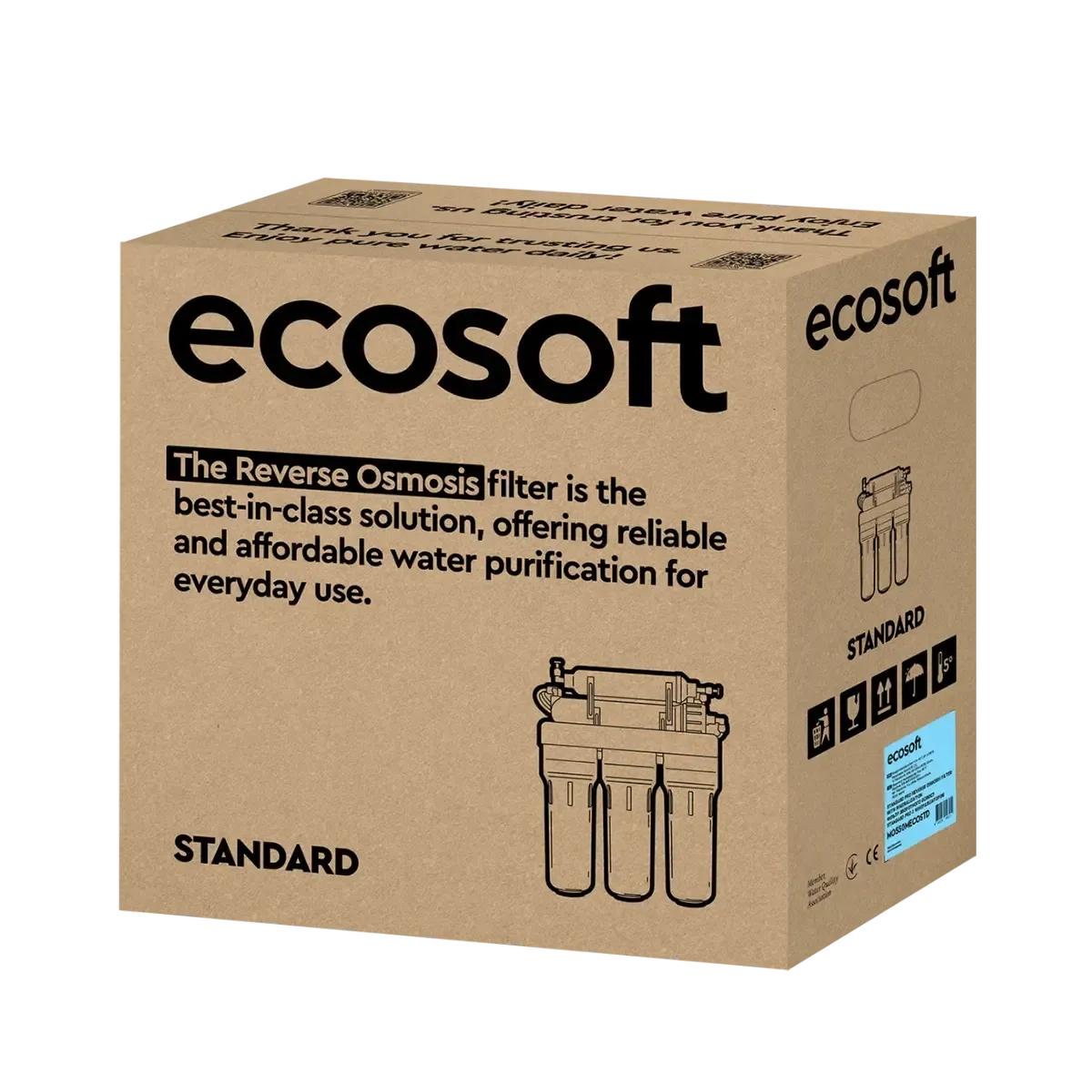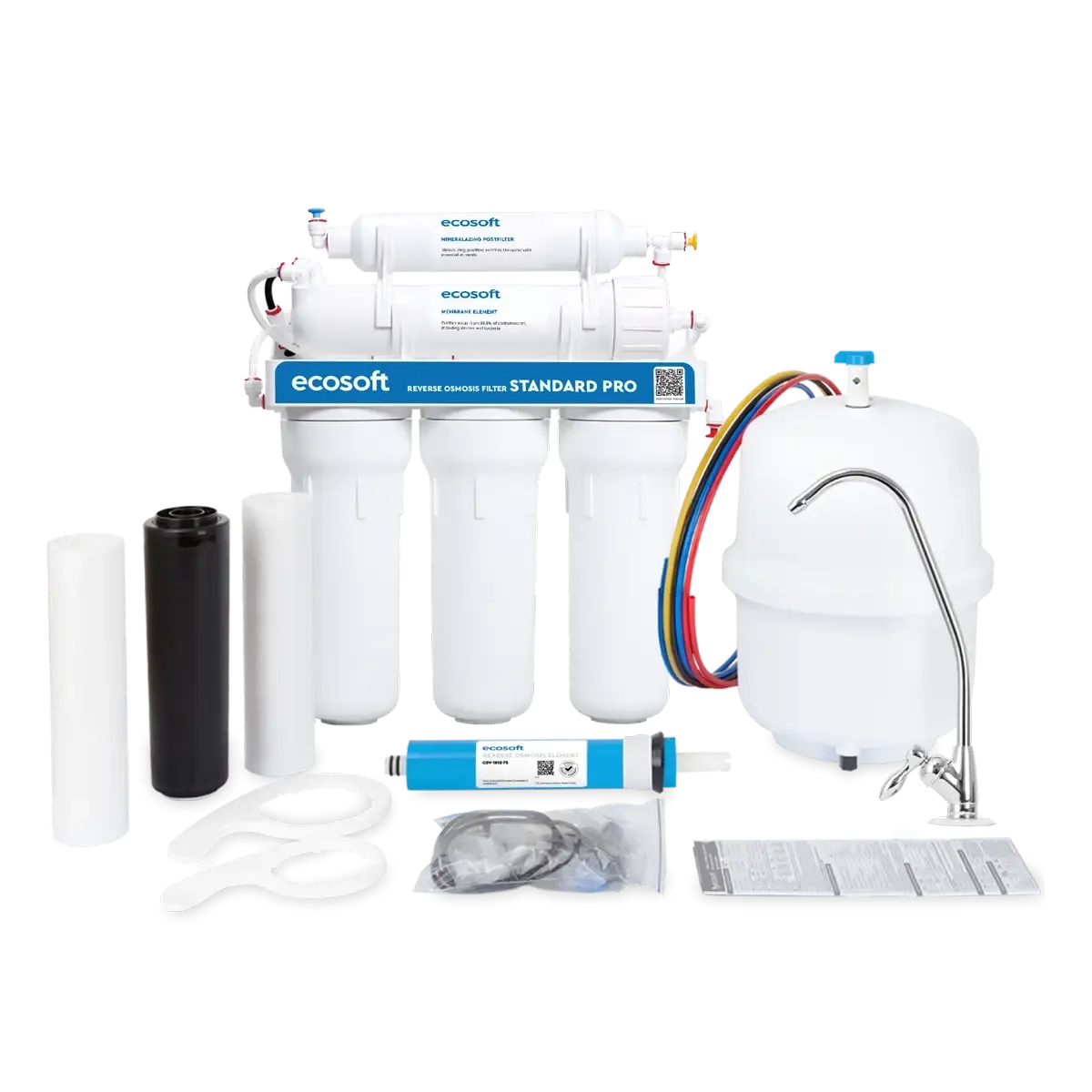 Ecosoft Standard PRO Reverse Osmosis Filter delivers high-quality water purification through a multi-stage process, ensuring safe, clean, and great-tasting water for your household. Here’s a detailed overview: